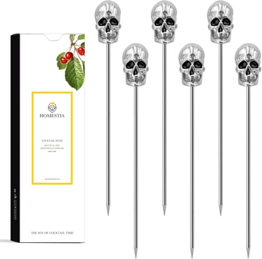 10. Homestia Stainless-Steel Skull Cocktail Picks (Set of 6)