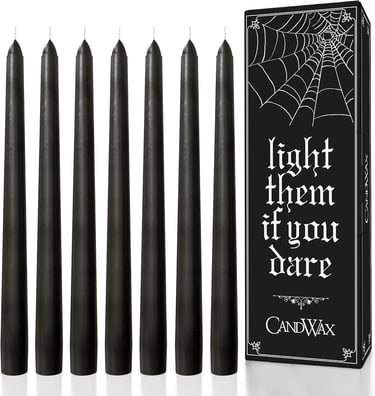 12. CANDWAX Dripless Black Taper Candles (12-Pack)