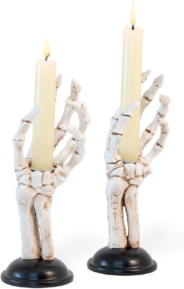 11. Boston International Skeleton-Hand Taper Candle Holders (Set of 2)
